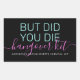 "But Did You Die" Personalised Bachelorette Survival and Recovery Hangover Kit Rectangle Sticker in black, bright neon teal, and hot pink and personalised text with the celebration location and date. Just add it to your DIY hangover relief kit favours for your bachelorette, girls trip, birthday, graduation party, or wedding bridal party gifts.