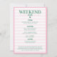 Our "Last Swing Before the Ring" package is the perfect way to kick off your bachelorette party weekend in style. Featuring a charming colour scheme of pink and green and a girly design, our invitation is sure to set the tone for a weekend filled with sports, cocktails, and laughter. And on the back of the invitation, you'll find a detailed itinerary of everything we have planned for you.