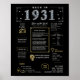 Embark on a journey back to 1931 with our captivating digital poster, brimming with historical facts, news highlights, and intriguing titbits from bygone years. Enhanced with faux gold and silver accents set against a striking black backdrop, adorned with distinctive icons and bold typography, this poster radiates timeless elegance. Whether igniting conversations at birthday parties or anniversaries, or when tastefully framed, it evolves into a cherished keepsake, suffusing any space with a nostalgic allure.
