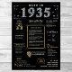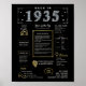 Embark on a captivating journey back to 1935 with our exquisite digital poster, brimming with historical facts, news highlights, and intriguing insights from the past. Enhanced with faux gold and silver accents against a striking black backdrop, adorned with distinctive icons and bold typography, this poster exudes an aura of timeless elegance. Whether sparking lively discussions at birthday parties or anniversaries, or when gracefully framed, it transforms into a cherished keepsake, infusing any space with a captivating sense of nostalgia.