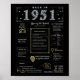 Step into 1951 with our engaging digital birthday poster, filled with historical facts, important events, and interesting stories from the past. Decorated with classy gold and silver details on a bold black background, featuring unique symbols and stylish text, this birthday poster has a timeless charm. Whether sparking conversations at birthday gatherings or kept as a keepsake, it brings back nostalgic memories.
