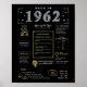 Step into 1962 with our captivating digital birthday poster, brimming with historical facts, noteworthy events, and intriguing stories from the past. Adorned with elegant gold and silver details set against a bold black background, featuring unique symbols and stylish text, this birthday poster exudes timeless charm. Whether sparking conversations at birthday gatherings or cherished as a keepsake, it evokes nostalgic memories.
