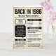 Back in 1986, 40th Birthday Fun Facts Card