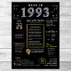 Step back into 1993 with our captivating digital birthday poster, brimming with historical facts, significant events, and enchanting narratives from the past. Adorned with elegant gold and silver accents against a striking black backdrop, this birthday poster exudes timeless charm.