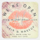 very chic business sticker for your hair and makeup luxurious business reopening. faux gold foil lips with monogram coupled with encircled sans serif business info