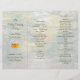 Scenic Fall season photography of a tree-lined back road makes up the background of this wedding program to be folded in thirds. Dark green template text is easy to change and customise for your ceremony. It will open like an accordion with all printing - images and text - on ONE SIDE ONLY. Choose any type of paper.