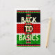 The design features the flag's colours—black, red, and green—in a brick-like, textured pattern, giving the piece a tactile, handmade feel. The iconic Maasai shield and spears are centred over the flag, while the bold, simple yellow text "BACK TO BASICS" emphasizes the importance of culture, unity, and national foundation. The entire motif is framed by a decorative border of miniature Kenyan flags, completing this proud, patriotic look.