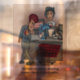 A window cling with a funny cartoon about back-to-school shopping supplies. Background and text can be personalised.  Original artwork by DB Cartoons.