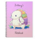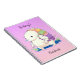 Personalised school notebook. Cute Kawaii cartoon axolotl wearing a back pack going back to school. Pastel colours.