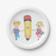 Back to School Cartoon Happy Pencil and Kids Paper Plate