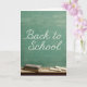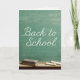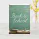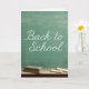 A classic green chalkboard displays 'Back to School' in elegant white cursive with pieces of chalk and eraser.