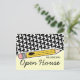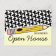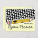 A postcard featuring a design on front consisting of houndstooth and a yellow pencil. Text reads "REMINDER: Open House." Personalise the back with details of your event.
