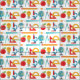A colourful school pattern featuring pencil, paint brush, apple, globe of the world, lightbulb, microscope and more.