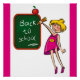 GIRL WRITING "BACK TO SCHOOL" ON THE CHALKBOARD, WITH AN APPLE FOR THE TEACHER