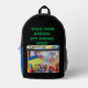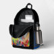 Back to school backpack with decorative front pocket for storage of pens, pencils, and other small items.