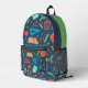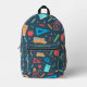 This design features cute cartoon characters of school objects on a blue background, perfect for back-to-school. The template includes a pocket for personalisation.