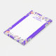 School supplies include scissors, pencils, a globe, crayons, etc. on a purple background. The central portion is white with thin grey lines. Custom Name. Back to school