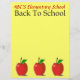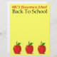 Easily personalise this bright and cheery custom letterhead stationery with any school or any teacher's name.  Original illustration with three red apples each with a green leaf on the bottom. Lots of copy space to write on later. Great  personal gift idea for teachers, and school administrators. "Back To School" text is part of the design with the apples. The yellow background colour can be changed easily.