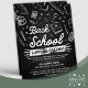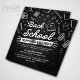 Promote your back to school supplies giveaway with this creative flyer featuring black and white chalkboard background, white school supplies and star illustrations, chalk streak & cursive "Back to School" typography. Customise template to your liking.