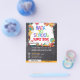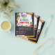 Chalkboard Back to school supply drive fundraiser flyer features a chalkboard background, chalk streaks, and colourful school supplies
