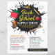 Back to school supply drive fundraiser flyer features school supplies with an accent splatter.