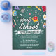 Promote your back to school supplies giveaway with this creative flyer featuring a green chalkboard background, coloured school supplies and star illustrations outline, chalk streak & cursive "Back to School" typography. Customise template to your liking.