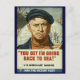 This is a image of a Vintage World War Propaganda poster that shows a Old Salty Sea Dog carring his bag and saying "You Bet I'm Going Back To Sea".