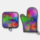 Colourful and vibrant oven mitt and pot holder set featuring our "Back to Summer Vibrant Colours" design