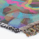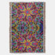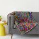 A quality printed throw has its advantages. This is a much finer weave throw than its loopier cousins, and though lighter, it is worth the investment for custom room accessorizing. The back is much prettier than the typical brown, and the fringe on the long sides very vivid, the selvage nicely done. Before photographing, I washed the throw in cold water, delicate, with a thicker woven throw the same size. On tumble dry low, this throw was dry in half the time as the other. This is a very practical quality if you use throws for furniture covers or to wrap up in frequently. The sleekness of the fabric makes it a great layer for accenting or protecting without the feeling of sitting on too much stuff. Perfect for napping or when you feel a light chill coming on. The color printing is beautiful and on this fabric, matched the design and color of my Photoshop image. This is an advantage for blending room fabrics and colors. The fringe on the short sides prints the colors from the design image and therefore varies from the side fringe. I streaked a white fractal line through the plaid pattern to give the illusion of weaving. This printed as crisp as an illusory thread, and put some white in the short side fringe, showing another advantage of print vs loomed- for artistic purposes, line lines, detail, and color integrity can be planned and preserved. My loomed throws have color limitations and more of a needlepoint texture. Print throws reproduce an exact image. The throw felt a little stiff straight out of the package, but this went away in the first delicate wash. Of course I searched the wash water for ink or bleeding and there was none.