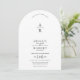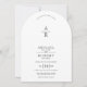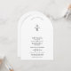 Back, white floral crest monogram arched wedding invitation