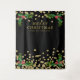 Elegant Gold & Black "Merry Christmas" holiday backdrop template with Watercolor Holly, Glitter Confetti & shiny frame.