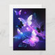 Black background with glowing night butterflies. Night butterflies. Design with butterflies.