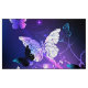 Black background with glowing night butterflies. Night butterflies. Design with butterflies.