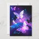 Black background with glowing night butterflies. Night butterflies. Design with butterflies.