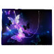 Black background with glowing night butterflies. Night butterflies. Design with butterflies.