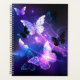 Black background with glowing night butterflies. Night butterflies. Design with butterflies.