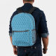 Hexagons, bars, triangles, circles, stars ... Dark blue "picture" text is used for the replicated design on a light blue background. The hexagon shape has triangles at the corners with bars connecting. Central hexagon is in the dark colour, with a starburst in middle. Customising "text" colour will show that colour in place of the blue, changing the background colour will replace the light blue.