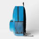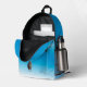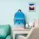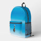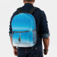 Pelican standing on rear pocket. Remainder of bag represents a clear azure sky.