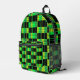 Go back to school in style with this green plaid print backpack. Fun book bag features a cool abstract plaid pattern in various shades of green and black, with black details. Original digital artwork by Buttercup's Clothing and Collectables.