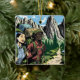 Backpacking Couple Hiking Trail through Mountains Ceramic Ornament
