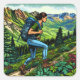 A woman with backpack hiking the A.T. or one of the hiking trails through the mountains and woods. Ai art done in a comic book pop art style.
