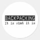 Backpacking, It Is What It Is. If Backpacking is your hobby, occupation, or obsession, show it with great Backpacking t-shirts, mugs, stickers, and more. They're also great gifts for other Backpacking fans!