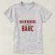 Fun women's tee for those livin' the country life. "Backwoods Babe" distressed dark red text with fancy flourish