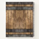 Unique bullet journal for those livin' the country life features "Backwoods Babe" distressed dark red text with fancy flourish on a whiskey keg wood background.