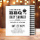 Get ready to welcome a little bundle of joy with our affordable BBQ baby shower invitation featuring chic black typography and black gingham reverse.