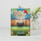 Rustic Backyard bbq barbecue party invitations. Features a black barbecue grill with smoke, wood sign, backyard illustration with wood fence. Plenty of room on the back to add extra info. Great for any bbq event like, graduation, family reunion, birthday, retirement, etc.