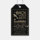 You might like to eliminate the honey label and try a custom honey jar neck tag on your honey during the busy season. Extra room on back for honey description and contact info.