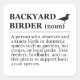 Backyard Birder Definition - Garden Birdwatching Square Sticker