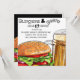 Oversized hamburger and oversized beer are tucked into the left and right corners of this backyard bbq burgers and beer party invitation. Customise with all of your party details on the front and change the font and colour of the font if you prefer. The reverse of this card features the same illustration with a black background. Perfect for spring and summer get togethers, parties and birthdays for him or her. Have a blast at your party!