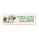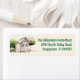 Farm themed return address labels with chicken coop design. A little brown hutch with door and windows sits among bushy trees. One chicken and a pail and jug are also part of the design. Background is off-white and bold, printed text is green. Four lines of text will fit the space, if needed.